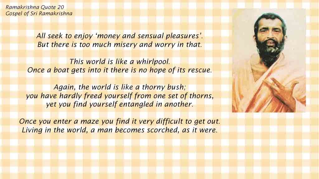 Ramakrishna Paramahamsa Quotes Ramakrishna Paramahamsa Quotes These are Great Teachings, offered in a concise manner. Each one here is a gem, and should be contemplated upon by every earnest Seeker of Happiness in Life and Self-Realization. Click on Image to read the post. [Show slideshow] ◄ 1 2